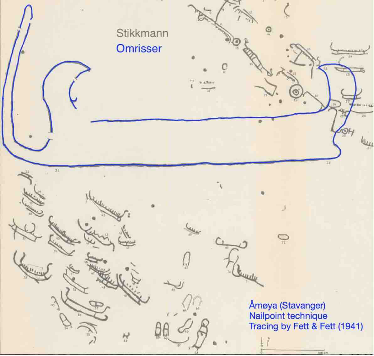 Innrisser also enjoyed the engraving process. Omrisser, on the other hand, was fond of drawing, but not engraving. He typically did not complete his engravings. For his large life-like animals, such as the 6-meter long whale at Bardal, he must have drawn them, to get the proportions correct, but didn't bother to completely engrave them.