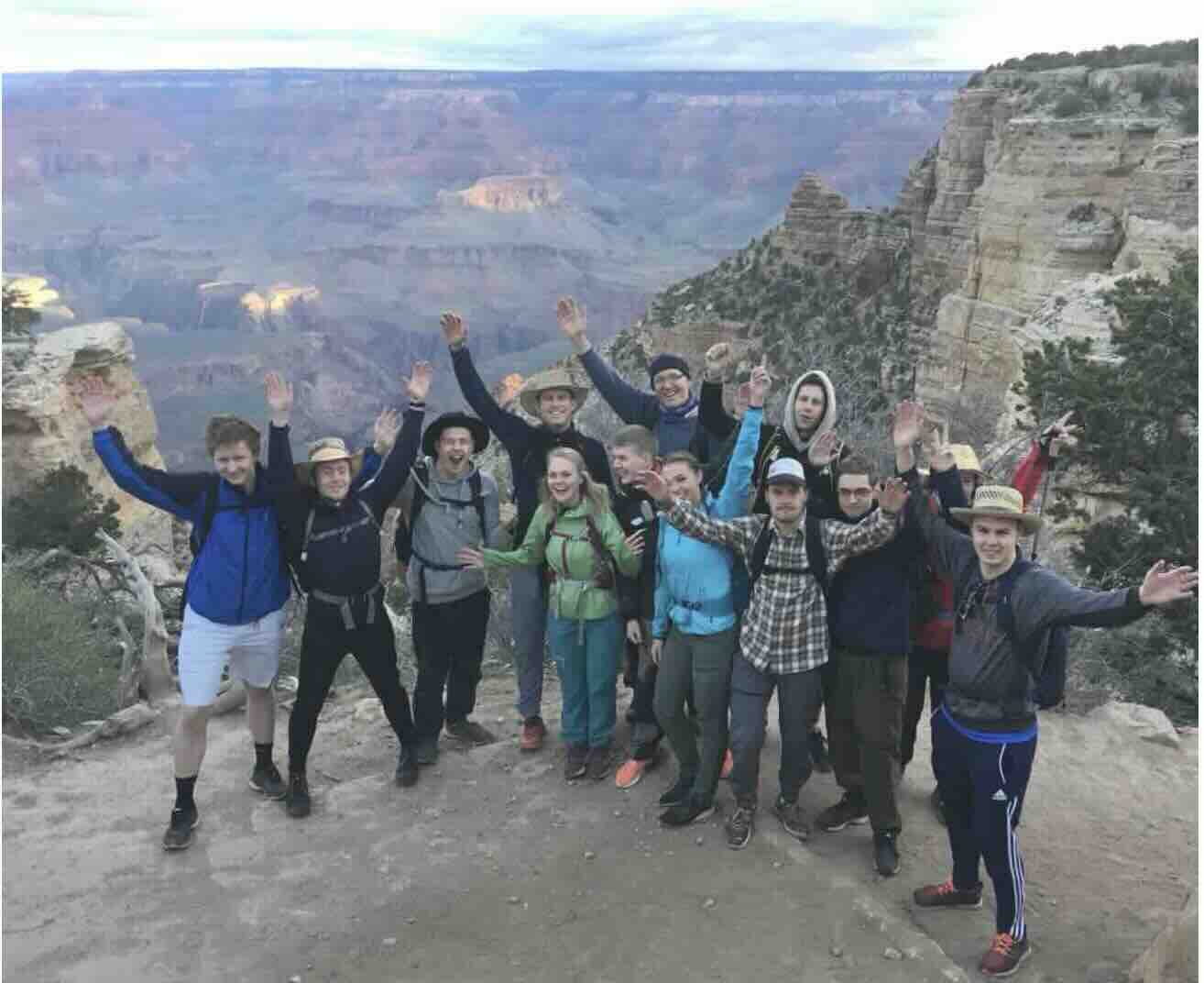 Left: Norwegian students at Grand Canyon USA, 2019 CE.